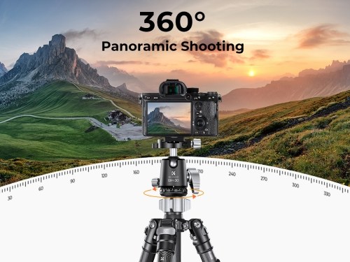 【360° Rotatable Ball Head】The 30mm large metal ball head on the camera tripod provides 12kg/26.5lbs load capacity, and can be rotated 360 degrees, helping to expand DSLR camera activity range for panoramic photography.