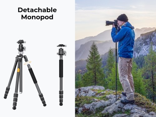 【Multifunctional Camera Tripod】The tripod for camera has a reversible center column, so you can get even closer to the ground for macro photography. One of the tripod leg can be taken off and works as a monopod or hiking stick, and usage height is up to 181cm/71.3cm plus the center column.