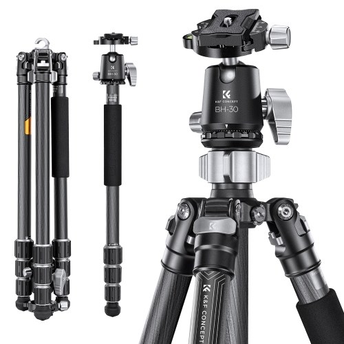 【Portable Tripod for Travel Use】Made of Carbon fiber material, the tripod for camera is corrosion resistant and more light; net weight is about 3.5lbs/1.6kg, and can be 180°reflexed and folded to 49.5cm/19.5in. Comes with a storage bag for easy carry.
