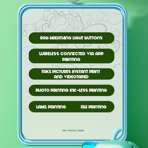 Superior Image and Video Quality: This children's camera is equipped with high-definition 48MP rear cameras, capable of capturing stunning photos and recording HD videos. This inkless pocket printer comes with RGB LED lights, which can provide rich lighting effects, adding a more pleasant atmosphere for your life.