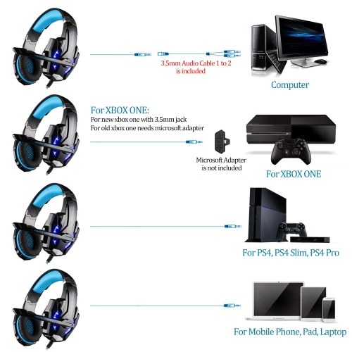 Suitable for smartphone, laptop, for PS4, and other audio devices with 3.5mm port. For Desktop PC, a 1 to 2 splitter line is needed (included).