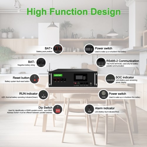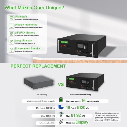 LANPWR 51.2V 100Ah rack mount lifepo4 battery fully integrates and communicates with many market-leading grid/off-grid inverter brands.