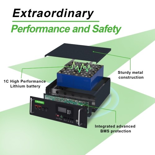 LANPWR 51.2V 100Ah lithium iron phosphate battery uses A-grade lithium iron phosphate cells, which have higher energy density, more stable performance, and higher performance. LiFePO4 batteries can be recycled and do not produce elements that are harmful to the environment, but lead-acid batteries pollute the environment.