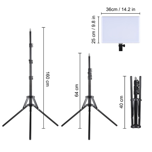 【With a Metal Light Stand】Equipped with a rotatable standard light stand mounting head, you can adjust the lighting angle easily, very flexible to use; comes with a metal light stand and max. usage height is about 1.6M, you can install the LED video light to light stand for more convenient and stable use.