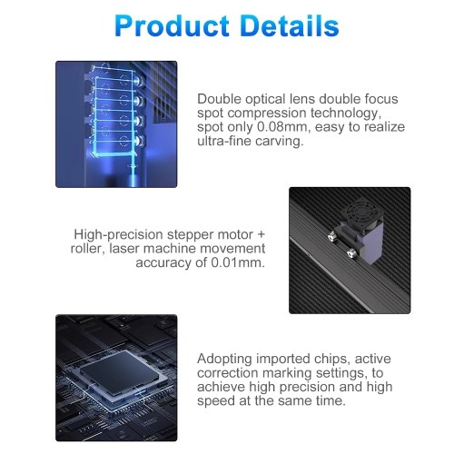 【Advanced Technology】Adopting the most advanced beam compression technology, 0.08mm square ultra-fine focusing laser, high precision, smoother and faster than ordinary laser. New precision engraving combination laser can directly engrave stainless steel, ceramic and glass (blackened glass surface).
