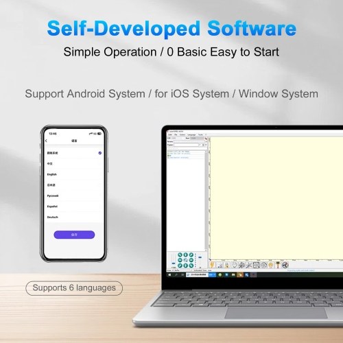 【Wide Range of Software Compatibility】Compatible with a variety of sophisticated engraving software, such as LaserGRBL and LightBurn, runs on Windows XP, 7, 8, 10, and also supports Mac systems. Engraving file format support: JPG, DXF, SVG, G-Code, NC, BMP and so on. The laser engraving machine is equipped with a power switch for emergency shutdown, making your work safer. BT with wireless connection supports iOS and Android apps.