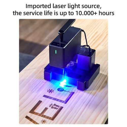 The LP2 is lightweight and has a handle for easy portability, making it ideal for repetitive tasks. It's easy to remove and install with just a thumb-tight screw. Once mounted, adjustments are made simply by adjusting the laser height via the side button. The noise of the marking machine is very small when it is working, and it hardly affects the rest of the family, and the engraved patterns are very clear and beautiful. Generally speaking, this is a very good product.