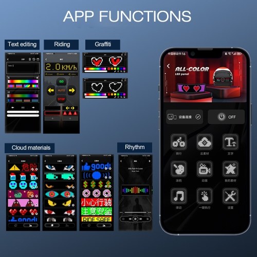 DIY Text, Graffiti, and Animation: You can express your individuality and creativity by personalizing the helmet display with custom text messages, unique graffiti designs, and captivating animations. Make a statement with this LED light up display.