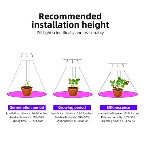 【Intelligent Timing and Remote Control】- With 8H/12H/16H timing function, this LED grow light allows you to set the desired lighting duration for your plants. The 120° irradiation angle ensures that every plant receives sufficient light. Additionally, it is equipped with an intelligent infrared remote control, making it convenient for you to adjust the lighting settings without having to physically reach the light.