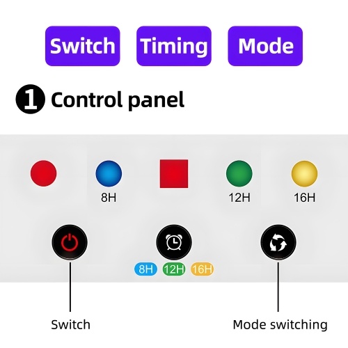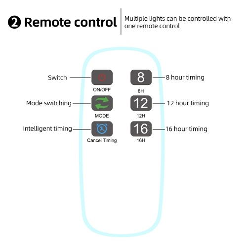 Control: Infrared remote control+button control, timing (8H-12H-16H)+mode switching
