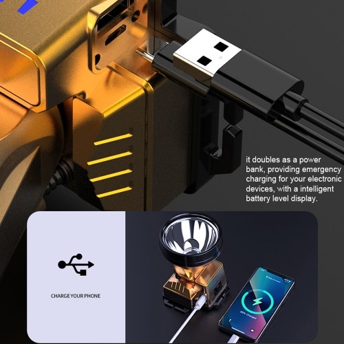 Long-lasting Battery: Built-in 2400mAh high-capacity battery, the headlight has low power consumption and long endurance. Additionally, it doubles as a power bank, providing emergency charging for your electronic devices, with a intelligent battery level display.