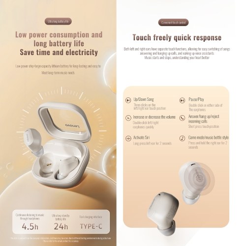 Adopts cutting-edge BT 5.4 technology. Experience enhanced sensitivity and dual-channel transmission for a stable connection, faster data transfer, and superior anti-interference capabilities. Equipped with a 10mm dynamic driver and AAC SBC audio decoding, delivering powerful bass and immersive stereo sound. With noise-canceling microphones, these headphones ensure crystal-clear call quality, making every conversation a pleasure. Each earbud has a press button to offer hassle-free control.