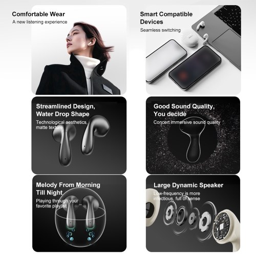 Effortless Pairing: The BT5.4 technology delivers a stable, low-latency wireless connection for high-quality sound. Also, the earbuds can connect automatically to the BT of your mobile phone when you open the charging box, more time-saving.