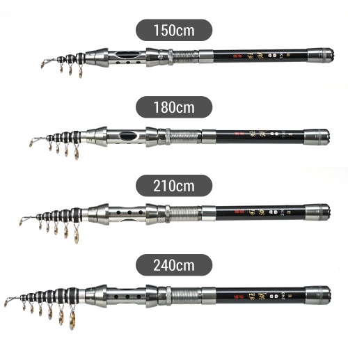 Telescopic carbon fishing rod is lightweight and portable.