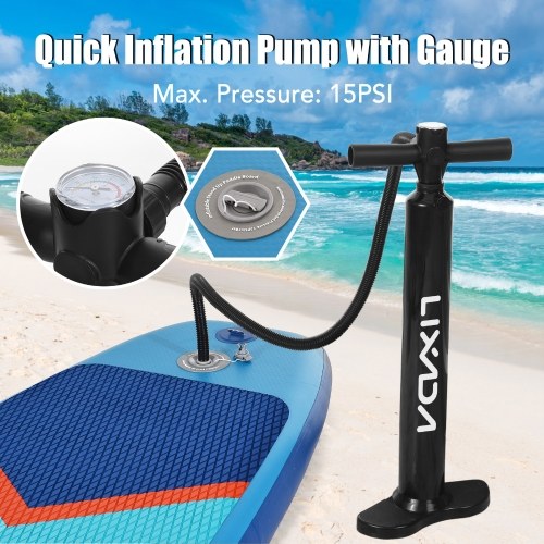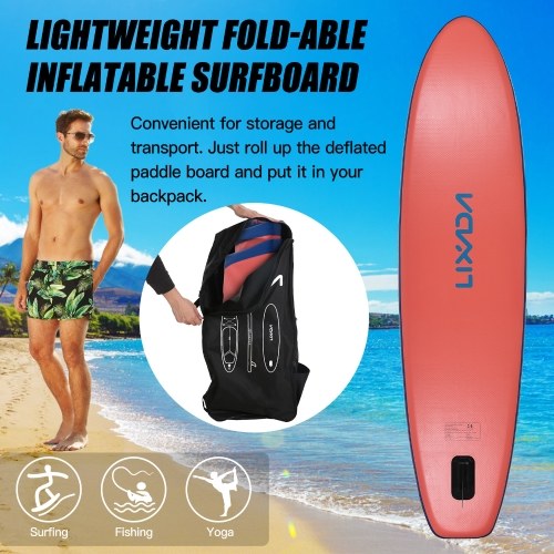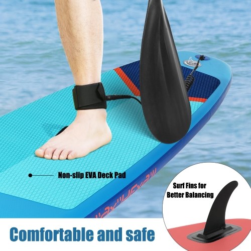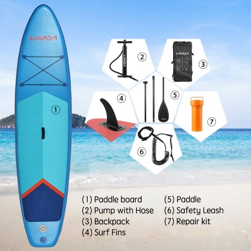 Comes with must-have accessories, including an adjustable paddle, surf fin, coiled safety leash, inflating pump, repair kit, storage strap, waterproof phone bag, travel backpack.