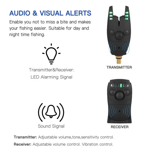 Wireless remote sense bite alarm kit not only has sound and light alarm while fish bites, but also send signal to over 100 meters away,so you can walk away or have a rest carrying the receiver,not afraid to miss hooked fish.
