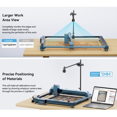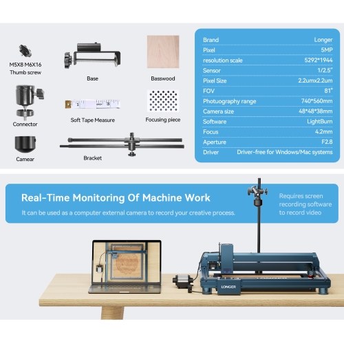Mighty Compatibility - This Lightburn camera is suitable for LONGER B1 series and RAY5 series engravers, and it compatible with all frame engraving machine such as xtool, ortur, atmostack, creality and sculpfun.
