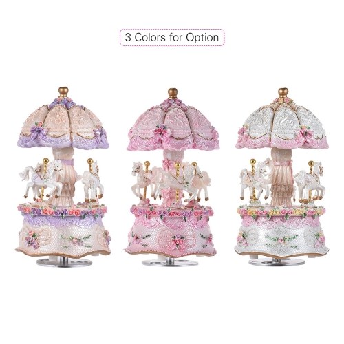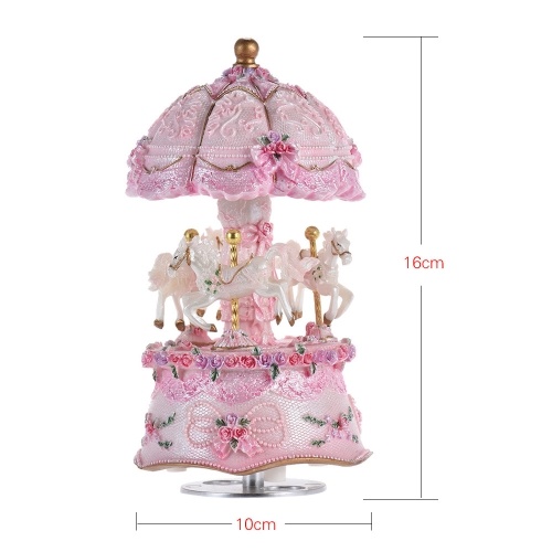 This is such a beautiful art work on this carousel and my 7 years old girl loves it. It is a pretty little collectible thing to look at or display. The melody it plays is very lovely too. (I actually turn it on and use it as a timer when I try to get kids do something in a short amount of time)