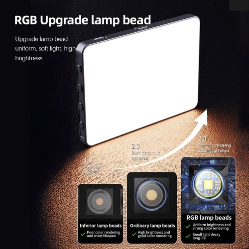 【Adjustable Color Temperature】This photography LED light offers limitless dimming and the ability to adjust the color temperature. You can easily alter the color temperature between 3000K and 9900K, while RGB can be adjusted from 0 to 359° and brightness from 0 to 100%.