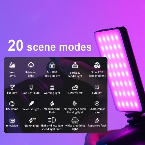 【20 FX Lighting Effects】The RGB photography fill light comes with 20 different scene modes, allowing you to add more interest and creativity to your work.
