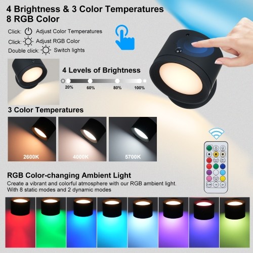 Adjustable Brightness and Color Temperature: The lamp offers 3 color temperature options, providing a comfortable and eye-friendly reading experience. With a touch-controlled stepless brightness adjustment or 4-level brightness adjustment via the remote, you can easily find the perfect level of brightness for reading or relaxing.