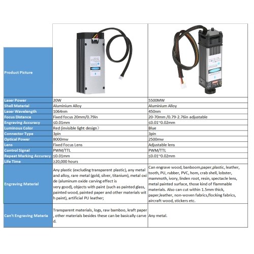laser module, easy to install, with lower loss, provides 1064nm wavelengt,an engraving accuracy of 0.001 mm,service life up to 20,000 hours, suitable for a wide range of engraving machines.It needs to be used with an engraving machine,allows you to engrave clearly and quickly on a variety of surfaces.