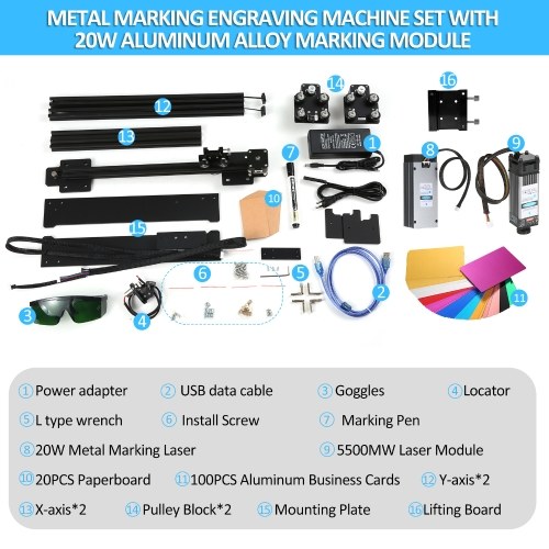 【Metal Marking Laser Module】With 1064nm infrared fiber laser,industrial grade optical sensor, dual optical lens, accurate focusing, low light loss, precise and fast laser focusing . With large size cooling fan for heat dissipation.It is the best choice for metal marking enthusiasts.