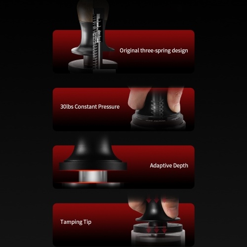【30lbs Constant Force】Better than traditional espresso tampers, the improved design adds 3 springs inside. 30 pounds of constant pressure, improve the flavor and stability of coffee.