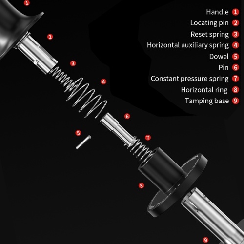 【Constant Pressure Spring】When the powder tamper presses down, the internal structure triggers the spring to release with sound feedback for better coffee making.