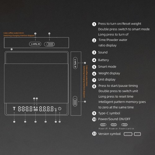 4.Coffee scale surface is waterproof, beware of liquid flow into the body of the gap and charging port;