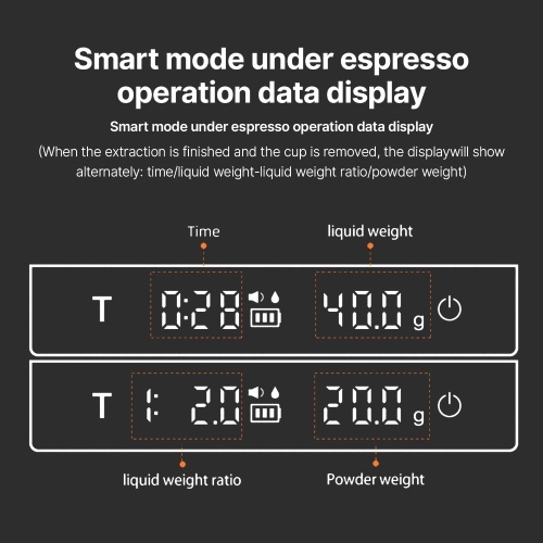 Manual and Auto Timing: The espresso digital timer scale has normal and smart modes, corresponding to manual and automatic timing functions,where the auto timer is accompanied by the solid-liquid detection function,which will turn on the automatic timing only after liquid is detected,allowing you to accurately calculate the coffee brewing time.