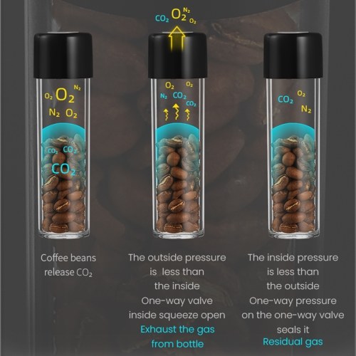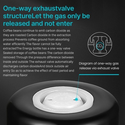 One-way Exhaust Valve: Through the pressure difference between inside and outside, the exhaust valve will automatically exhaust carbon dioxide and cut off the outside air from entering, thereby achieving the effect of slowing down oxidation, raising beans and maintaining flavor.