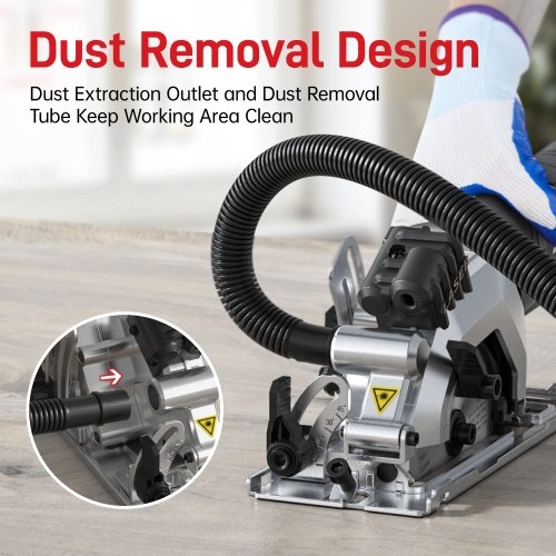 【PRECISE LASER DEVICE & DUST EXTRACTION HOSE 】The laser guide and guide fence ensures a precise straight line for cutting wood and PVC tube, highly improve your work efficiency and cutting performance. The Left-sided blade design helps you to clearly see the cutting line. A dust extraction hose allows you to maintain a clean work environment.