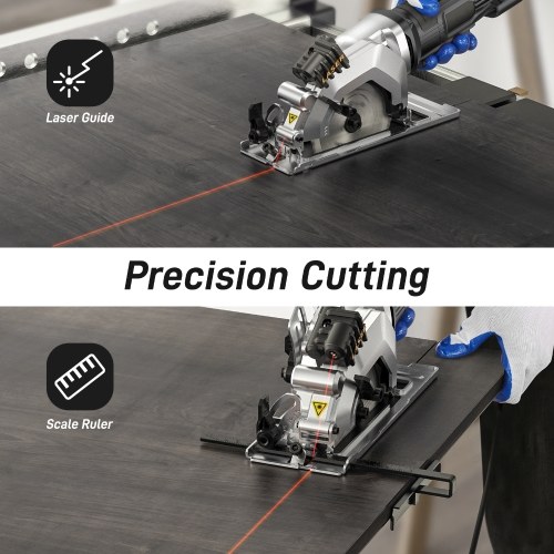 Mini Circular Saw, 4.8 Amp 580W 4-1/2 Inch Compact Circular Saw, 3700RPM, Electric Circular Saws with Laser Cutting Guide, Perfect for Wood, Tile and Plastic Cuts