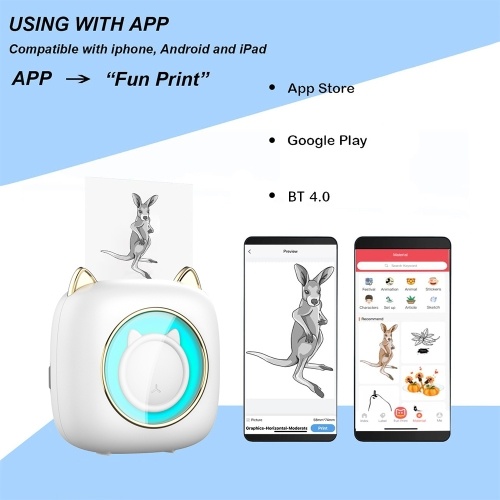 ✔ Connection Method: Support Wireless BT 4.0 connected with smartphone. Please follow the user guide to download the relative APP (Fun Print) through the APP Store (IOS System) or Google Play (Android System).