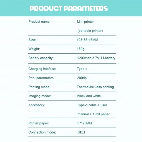 Seamless Connectivity: With its simple connection method, this portable printer easily pairs with your smartphone via wireless BT function. The user-friendly interface ensures a hassle-free experience. Whether you're at home, in the office, or on the go, you can conveniently connect and print with ease.