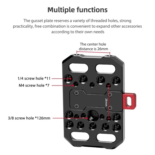 【Multiple Threaded Holes for Customization】The V lock battery plate features various threaded holes(1/4 Inch, 3/8 Inch, M4) for enhanced practicality and versatility, allowing you to freely combine and expand with other accessories based on your specific needs.