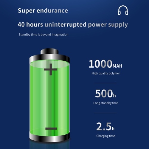 Strong Battery Life: Built-in 1000mAh battery provides 40 hours of uninterrupted power supply, standby time up to 500 hours, and charging time is only 2.5 hours.