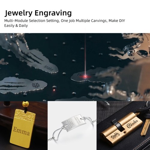 ▶ Batch & Large Objects Carving: With dual red light positioning, support batch carving with just one time to set the parameters. Design 180° rotating lens support to carve any patterns in a large object such as luggage, unlimited your creation.