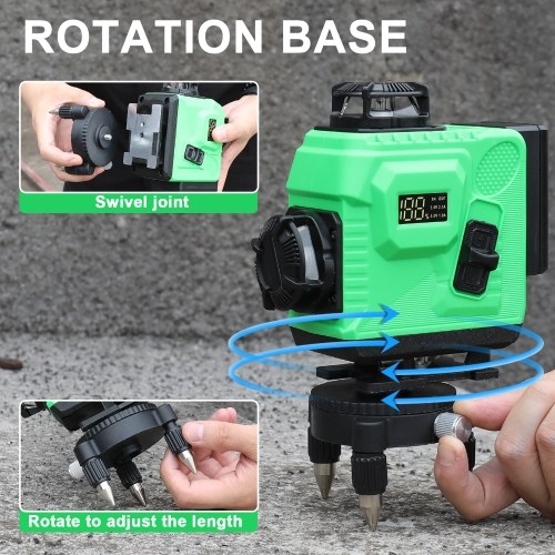 【High Extensibility】: The bottom of the laser level is reserved with 1/4inch screw thread for easy connection, it can also be used with a tripod (included) by 1/4inch to 5/8inch threaded rotation base (included) or 1/4inch to 5/8inch adapter (included) to adjust the working height of the machine.