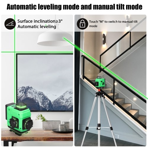 【Tilt Mode】: It has a tilt mode, you can place the laser tool at any angle to make tilt lines, the line will not flash and will not promote a beeping sound.