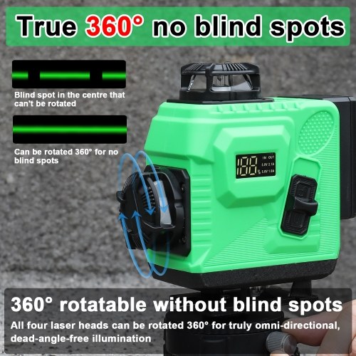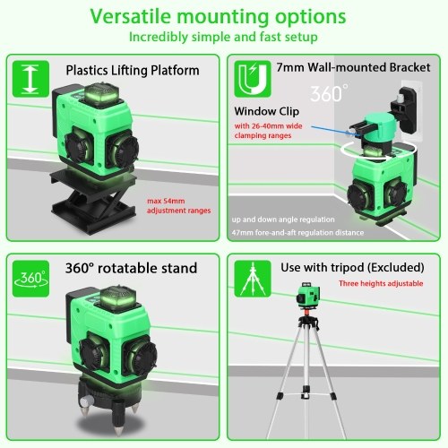 【Millimeter-level Laser Sources】: Using 4 high-precise millimeter-level green laser line laser sources, with higher brightness, strong penetrability, adjustable thickness, and brightness, the light is visible clearly both indoors and outdoors.