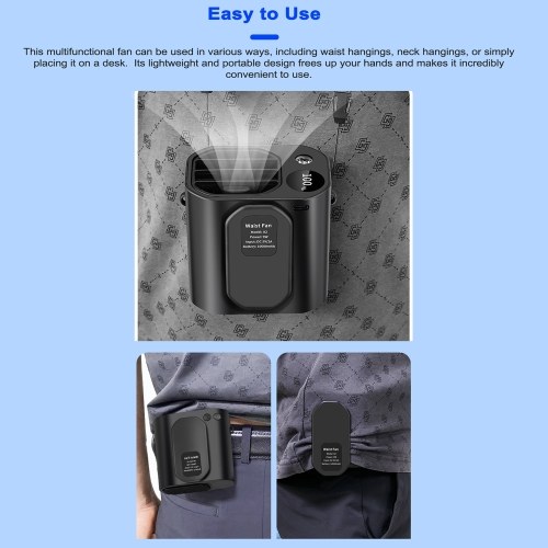 Easy to Use: This multifunctional fan can be used in various ways, including waist hangings, neck hangings, or simply placing it on a desk. Its lightweight and portable design frees up your hands and makes it incredibly convenient to use.