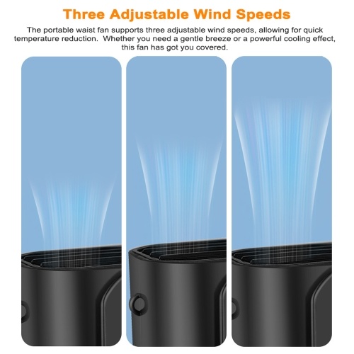 Three Adjustable Wind Speeds: The portable waist fan supports three adjustable wind speeds, allowing for quick temperature reduction. Whether you need a gentle breeze or a powerful cooling effect, this fan has got you covered.