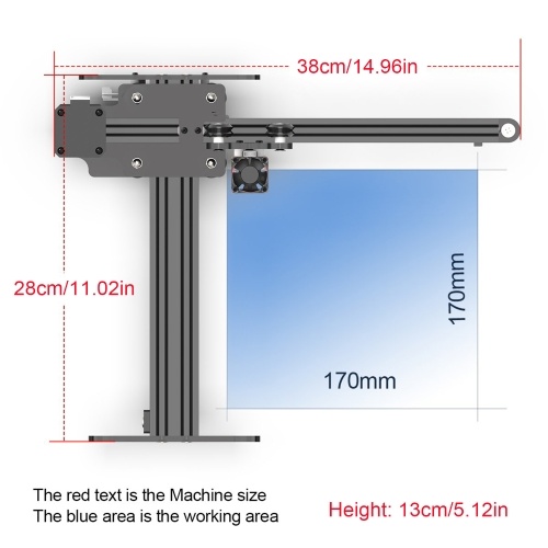 1. 170 x 170 mm: Moderate use area, and under the protection of MEMS vibration protection sensor, the engraving and cutting processes can be completed at the same time. The whole machine function test requires only 4 screws to complete the installation.