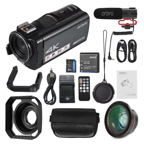 【Various Expansion Accessories】External 0.39X wide angle lens can enlarge the limited indoor space to solve the issues of narrow filming ranges; the lens hood can block and disturbances of surrounding lights; external microphone with low-cut function for better sound pickup; foldable U-shaped holder can effectively prevent vibrations; 64GB memory card can store lots of videos and photos.