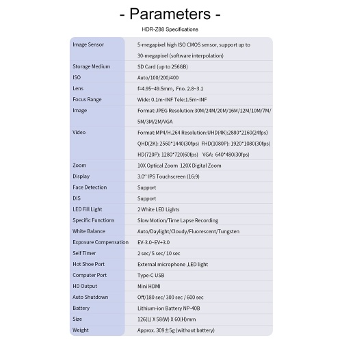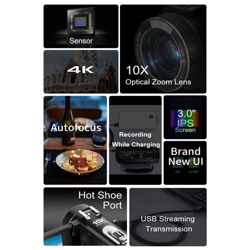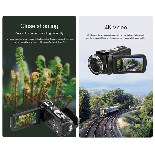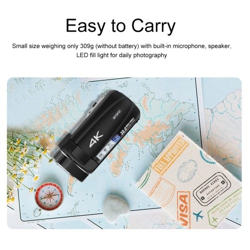 【Portable 4K Digital Video Camera】Adopting 5MP high sensitivity CMOS sensor, our digital video camera supports max. 4K/24fps high video resolution and 30MP(interpolation) super clear image resolution. Lightweight and portable, it is easy to carry the video camera around in the carrying bag.