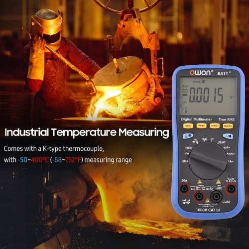 Temperature Measurement -- Comes with a K-type thermocouple, this smart meter features -50~400℃ (-58~752℉) wide measuring range for industrial temperature measuring, which has quick response and brings accurate data.