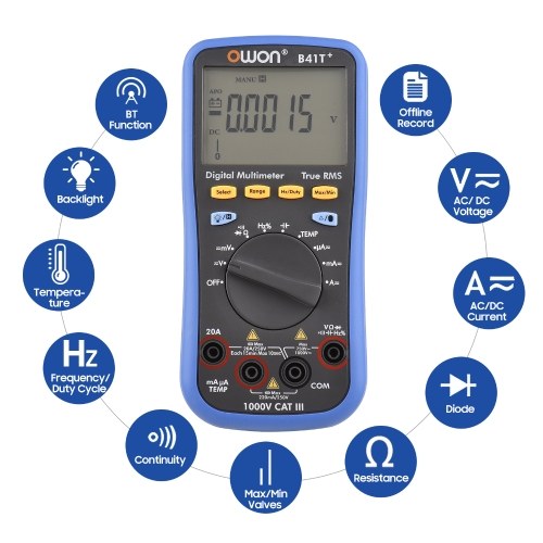 BT Function & Offline Record -- It supports BT function in smartphone APP and PC software, and is compatible with Android 4.3 and above/ iOS 7.0 and above/ Wins. Offline record function allows you to record for a long time without staff on duty, while reducing BT consumption to conserve the battery power of the multimeter. And multiple groups of data can be recorded at the same time.