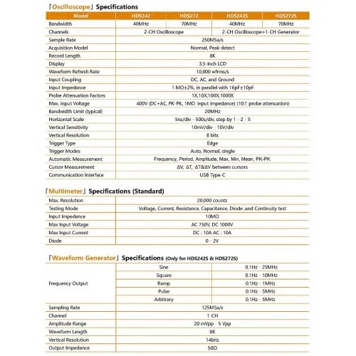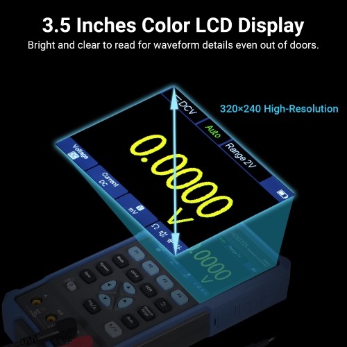Versatile Handheld Test Instrument -- Handheld Oscilloscope Function + Digital Multimeter Function + Waveform Generator, 3-in-1 integrated multifunctional handheld test instrument. One key switch easy to operation, compact size with stand bracket suit for outdoor maintenance, rapod on-site measurement, automobile maintenance, power detection, etc.